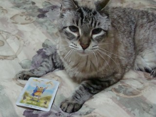 | I’m grateful for my cat, Dickens who loves Lisa Hunt’s Celtic Dragon Tarot as much as I do! |