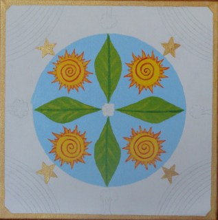 The pace has continued and so that is where I have been. I am “here” as being online, but I’ve been performing enchantments, doing readings, creating a Manifestation Mandala (which is nearly completed, see the photo at left), plus in between all that taking care of our house, our child, making meals, washing dishes, doing laundry, vacuuming, buying the groceries, and doing all the other “mom” things that I do on a regular basis. I didn’t even have time to focus on my own art work – my Magickal Musings Tarot has languished for most of the summer. I only returned to working on it in earnest this past weekend and a new card, the Ace of Birds, is now nearly complete.