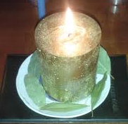 Get a white candle – votive or taper, doesn’t matter.  You will also need olive oil and the following herbs (all dried & crushed or powdered): Garlic, Rosemary, Bay Leaf.