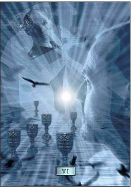 The 6 of Cups represents the earth’s spirit. The 6 of Cups denotes nostalgia for the past, yearning for what once was, idealization of the past and/or past relationships, and wearing rose-colored glasses. There is a need to establish more realistic expectations. I interpret the 6 of Cups to represent humans as the spirit of the earth and of most of us being unwilling to move forward, clinging needlessly to the past in an effort to keep things as they are instead of embarking upon a new and higher path into the unknown. Many find newness or change to be very frightening so they do whatever they can to fight against it. Humankind can only battle these new energies for so long before they will be eventually swept up by them and shall then embark upon a new and higher path leaving the past behind where it belongs.