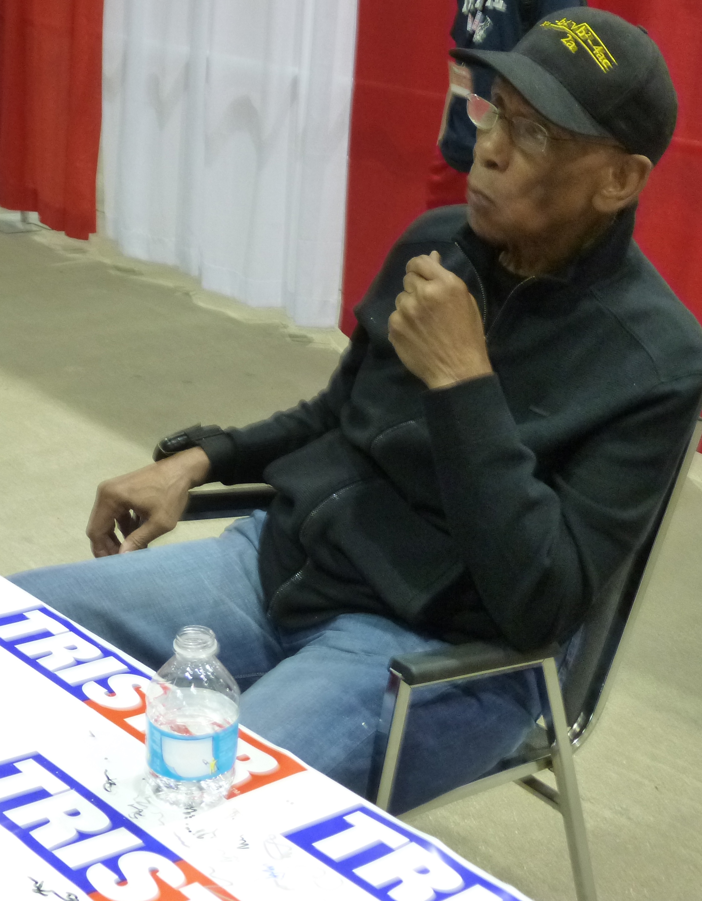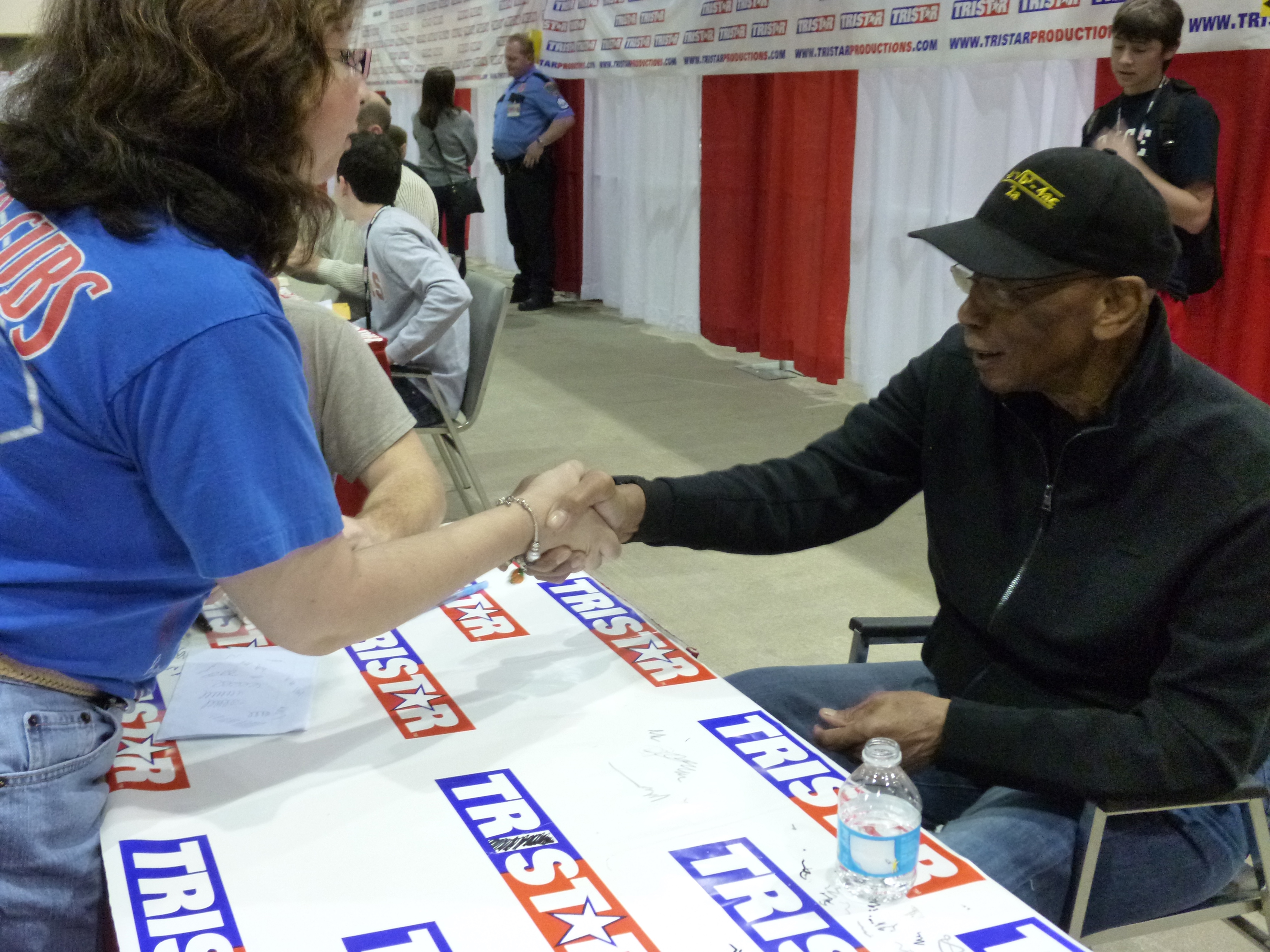 Ernie thanked me and told me it meant so much for him to know this. He motioned for me to come around the table and said he needed a hug. He hugged me so tight with both arms, while those who posed with him for pictures while I waited in line to speak to him received only one arm hugs or handshakes. He put his face right up against mine cheek to cheek & he thanked me several times with a hitch in his voice. He still had tears in his eyes & then he asked to see the picture that had been such a huge inspiration to me.