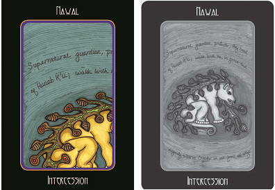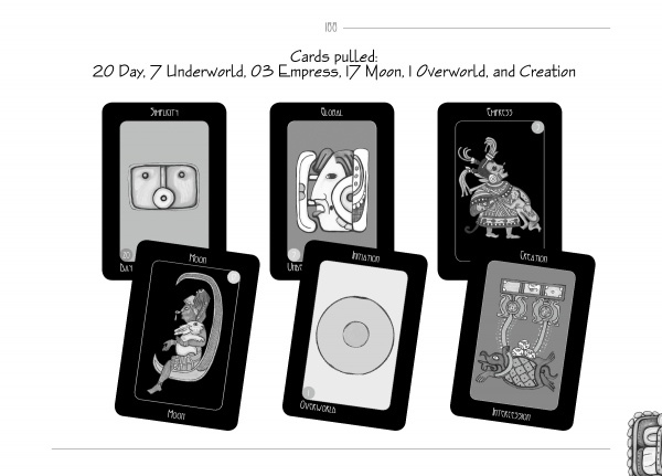 The third suit is Navigating the Underworlds. Ancient Mesoamericans believed the underworld consisted of nine levels. As a result, this suit consists of nine cards, each one corresponding to a particular level of the underworld, or Xibalba, as it was known to the Classic Maya.