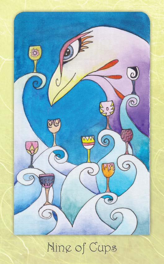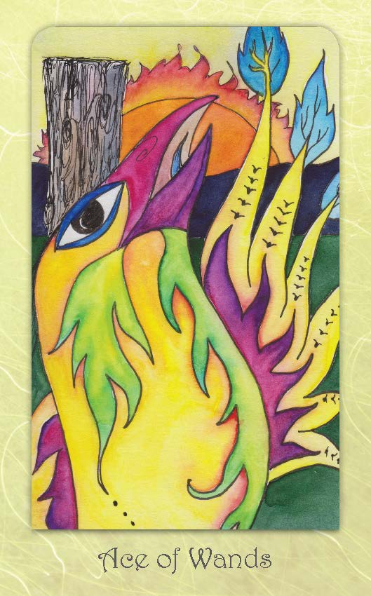 Who would ever think that lime-green (or chartreuse) would work as a border color for a tarot deck? In the case of the Dream Raven Tarot by Beth Seilonen, this color works beautifully and showcases the bright colors of the Dream Raven Tarot quite well.