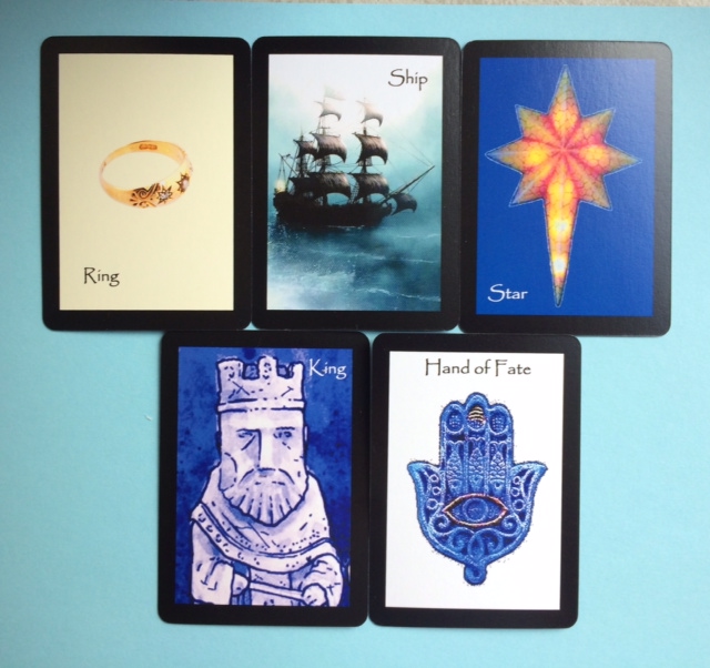 For those of you who read Lenormand cards, I did not pre-select a significator. All five cards were drawn at random. I note that I was concerned about my daughter’s success this academic year and the Star card is in the central position where the significator would normally appear. The Star means goals, hopes and success. It matches my concern regarding my daughter.